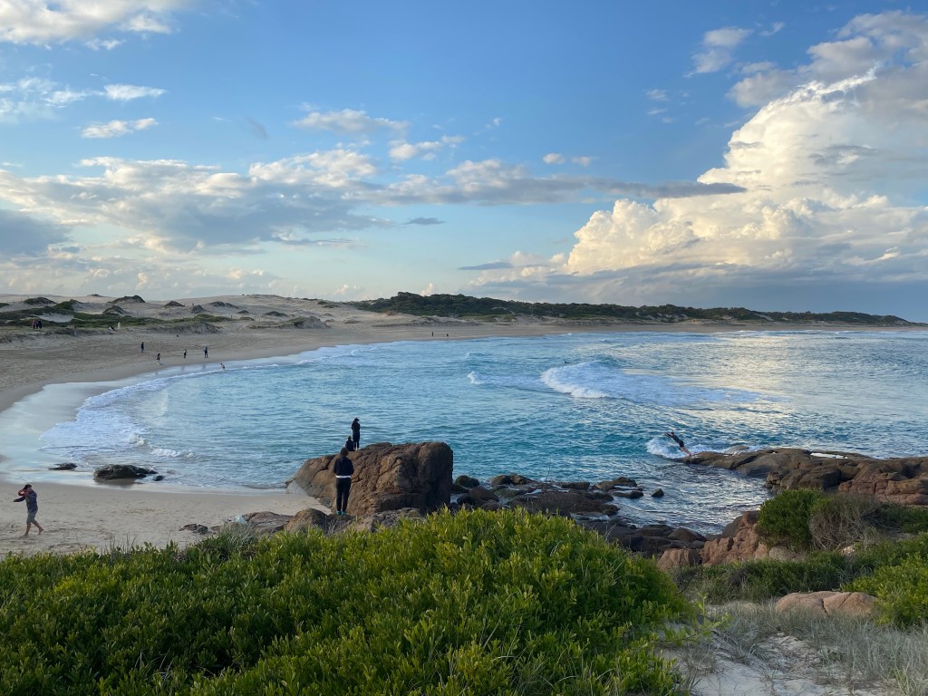The beach drive is about 7.5km long and you end up at a beautiful headland, Dark Point. Park here and head over the headland on foot. The bay on the other side is stunning and the awesome spot for a swim or surf.