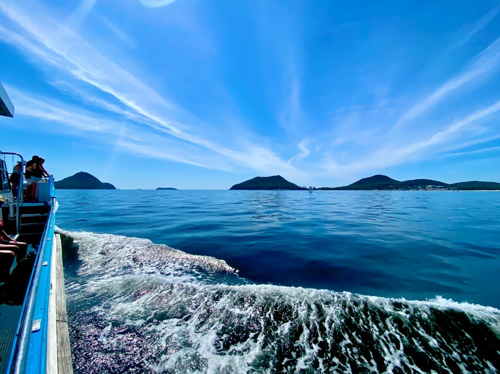 We booked on the ‘Moonshadow Spirit of Port Stephens’ tour. The boat left from Nelson Bay Marina (1 hr drive from Sandy Feet). The tour was a full day including lunch.